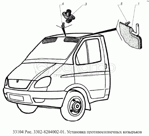 Каталог запасных частей к технике: ГАЗ-33104 Валдай Евро 3. Установка противосолнечных козырьков