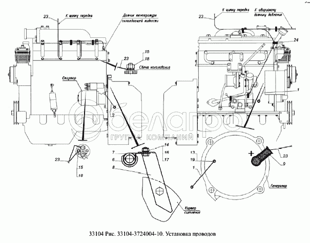 Каталог запасных частей к технике: ГАЗ-33104 Валдай Евро 3. Установка проводов