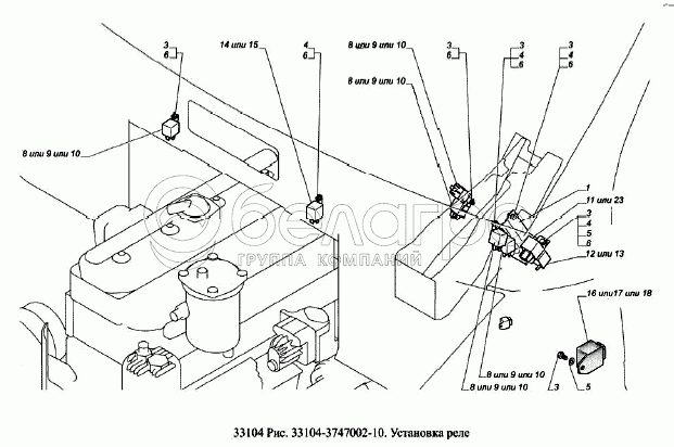 Каталог запасных частей к технике: ГАЗ-33104 Валдай Евро 3. Установка реле