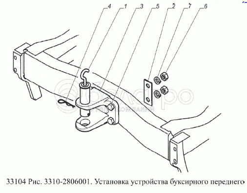 Каталог запасных частей к технике: ГАЗ-33104 Валдай Евро 3. Установка устройства буксирного переднего