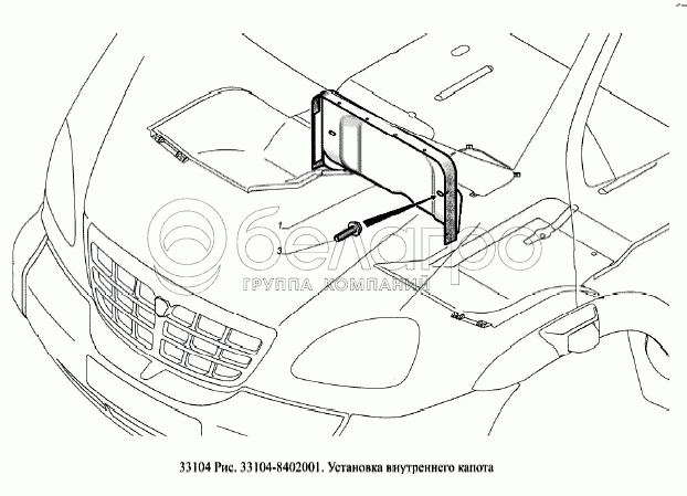 Каталог запасных частей к технике: ГАЗ-33104 Валдай Евро 3. Установка внутреннего капота