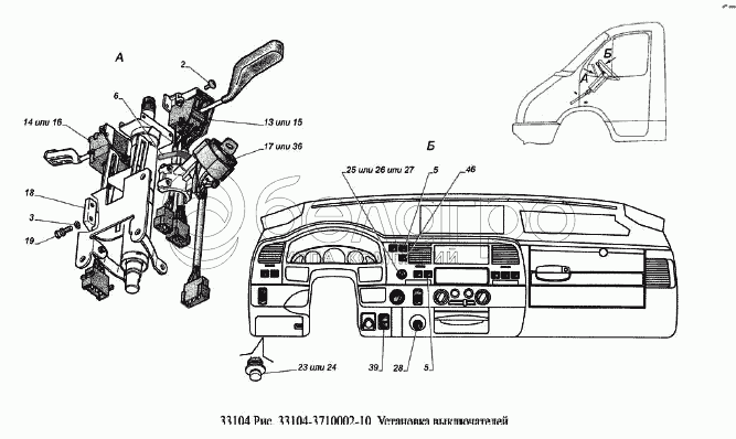 Каталог запасных частей к технике: ГАЗ-33104 Валдай Евро 3. Установка выключателей