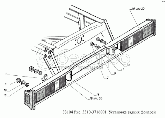 Каталог запасных частей к технике: ГАЗ-33104 Валдай Евро 3. Установка задних фонарей