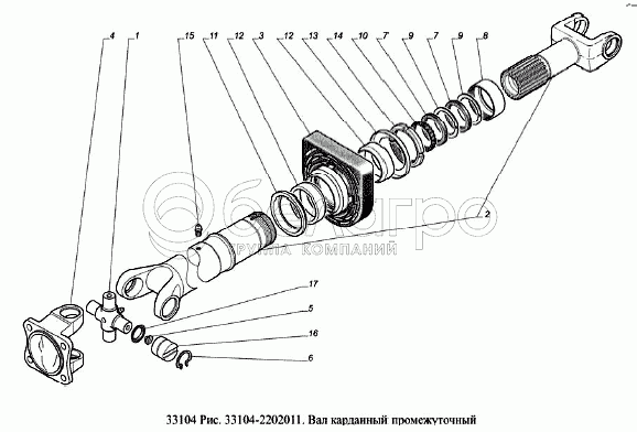 Каталог запасных частей к технике: ГАЗ-33104 Валдай Евро 3. Вал карданный промежуточный