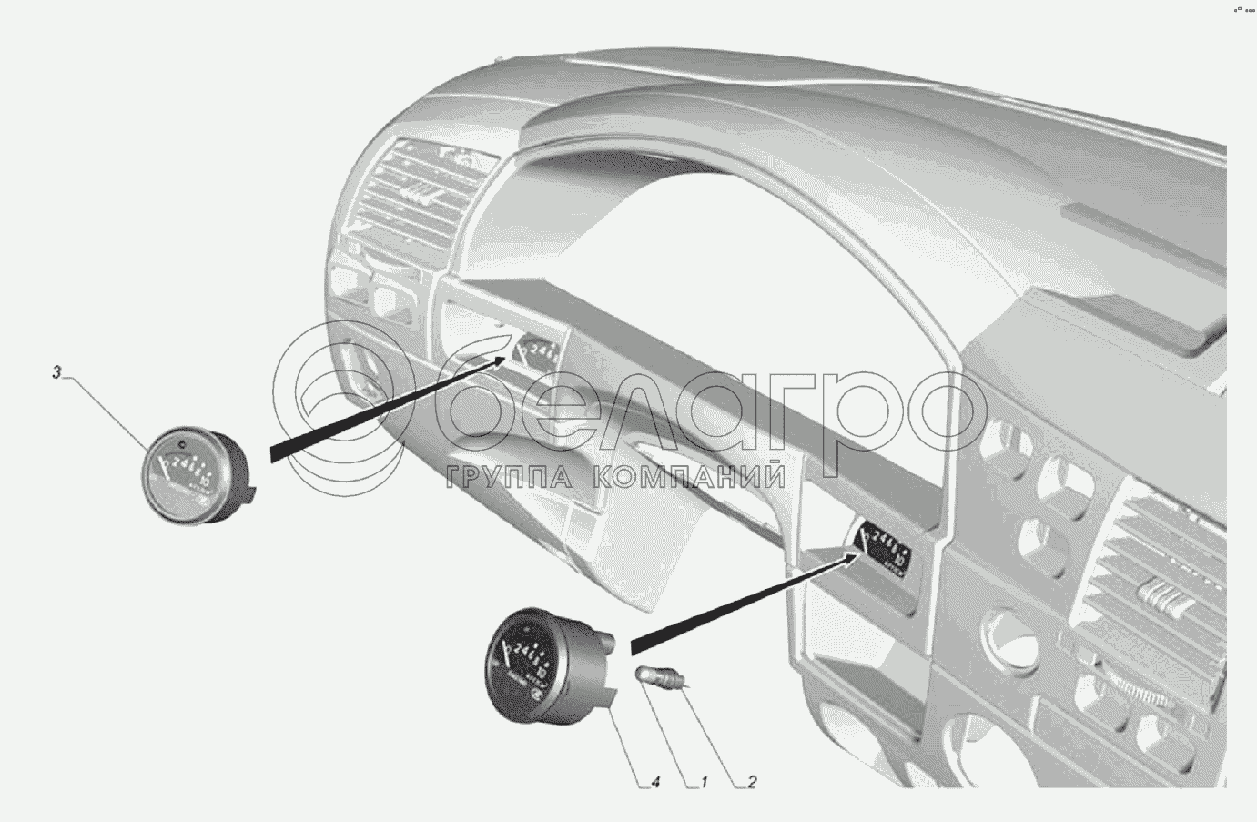 Каталог запасных частей к технике: ГАЗ-33106 Евро 3. Установка манометров 33104-3830002