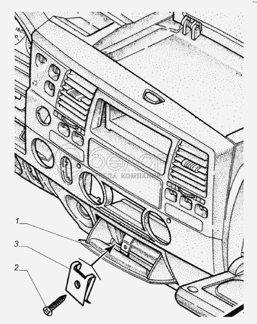 Каталог запасных частей к технике: ГАЗ-33106 Евро 3. Установка передней пепельницы 3310-8203005