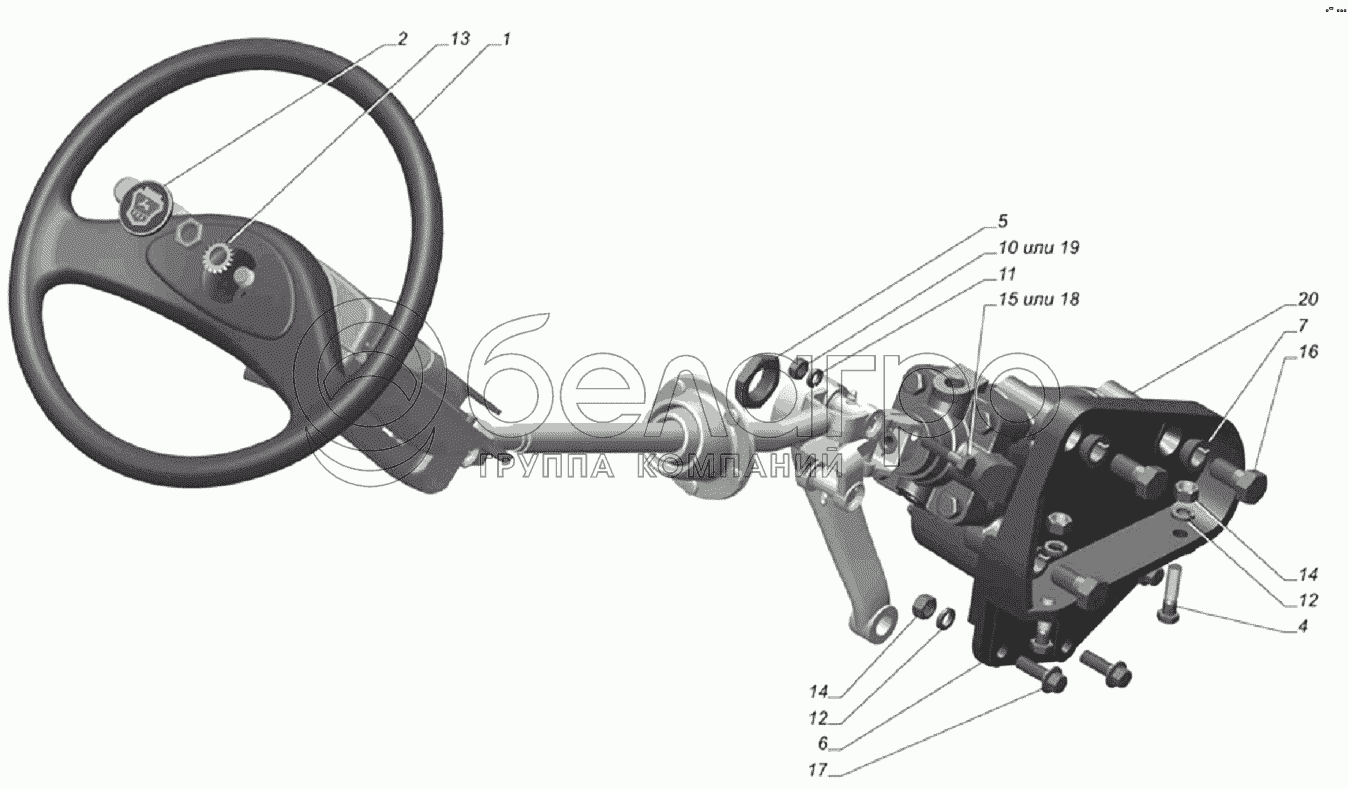 Каталог запасных частей к технике: ГАЗ-33106 Евро 3. Установка рулевого управления 33106-3400001