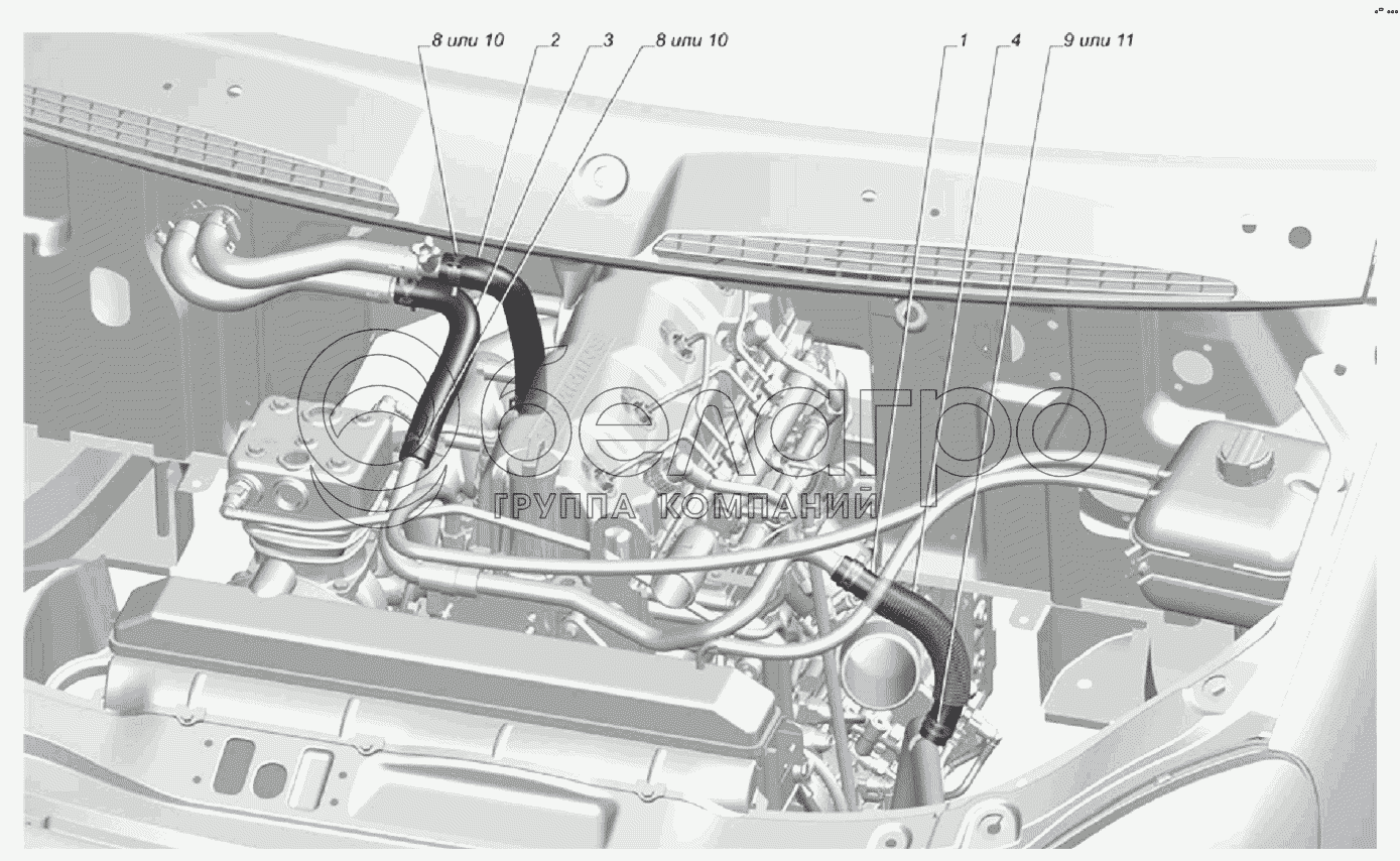Каталог запасных частей к технике: ГАЗ-33106 Евро 3. Установка трубопроводов 33106-8120001