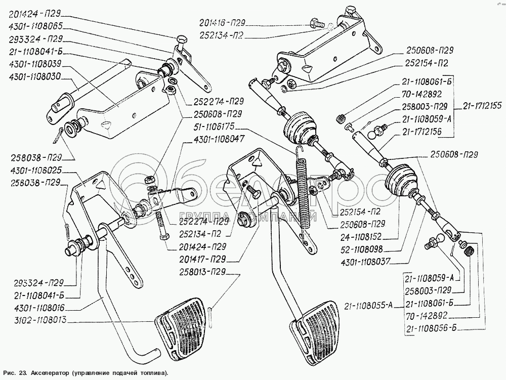 Каталог запасных частей к технике: ГАЗ-4301. Акселератор (управления подачей топлива)