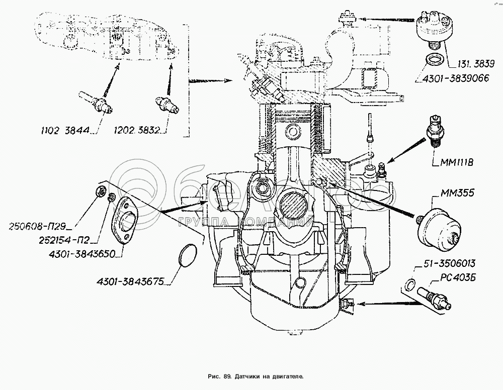 Каталог запасных частей к технике: ГАЗ-4301. Датчики на двигателе