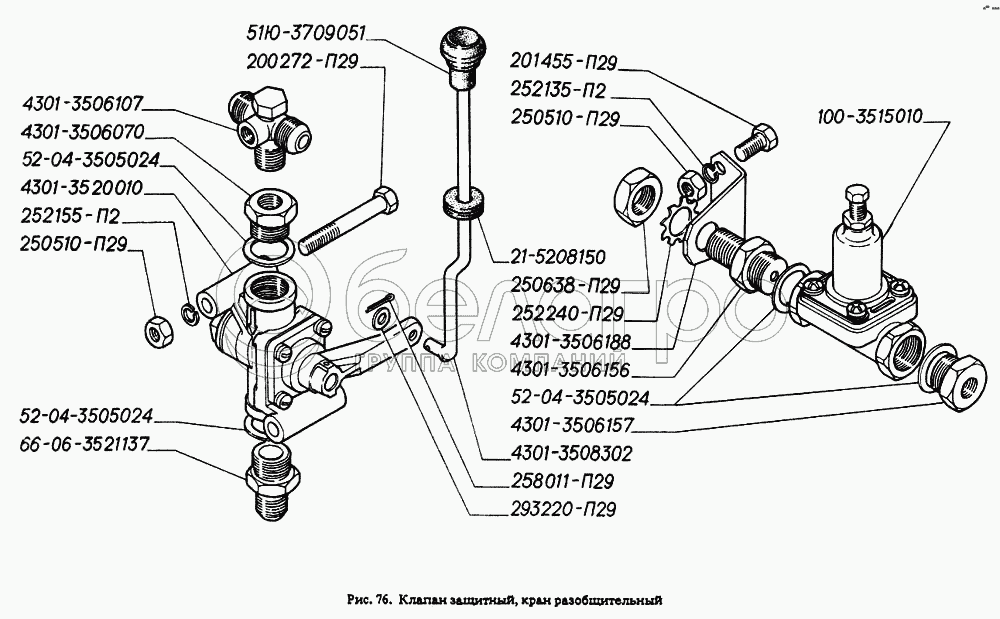Каталог запасных частей к технике: ГАЗ-4301. Клапан защитный, кран разобщительный