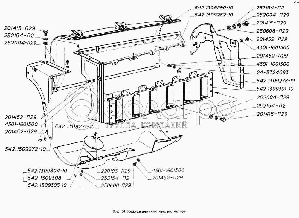 Каталог запасных частей к технике: ГАЗ-4301. Кожухи вентилятора, радиатора