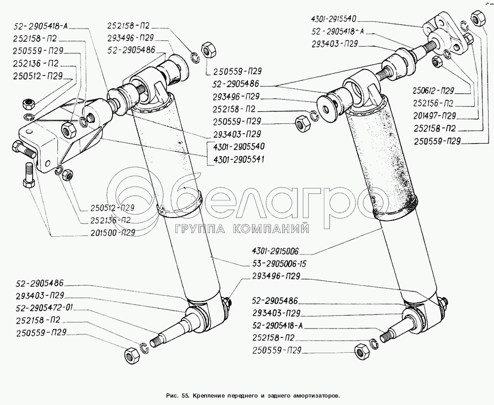 Каталог запасных частей к технике: ГАЗ-4301. Крепление переднего и заднего амортизаторов