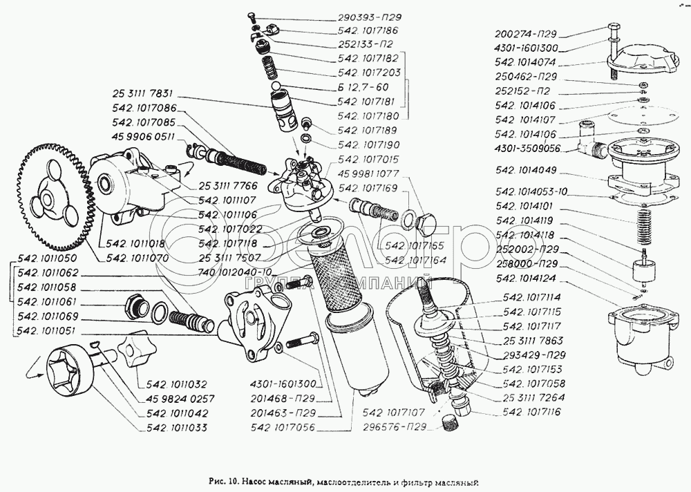 Каталог запасных частей к технике: ГАЗ-4301. Насос масляный, маслоотделитель и фильтр масляный