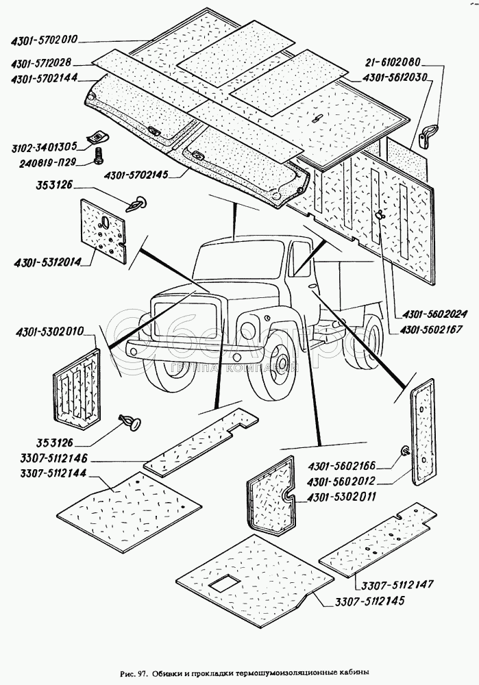 Каталог запасных частей к технике: ГАЗ-4301. Обивки и прокладки термошумоизоляционные кабины