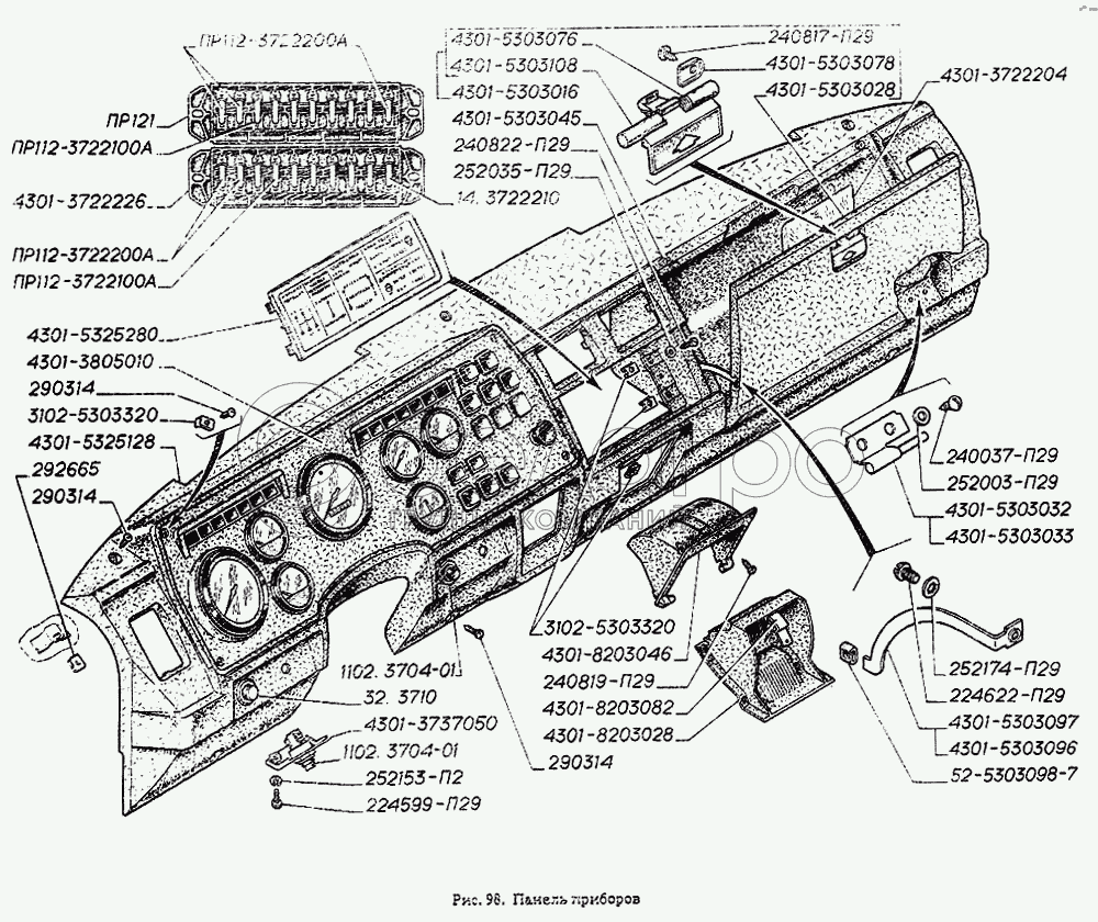 Каталог запасных частей к технике: ГАЗ-4301. Панель приборов