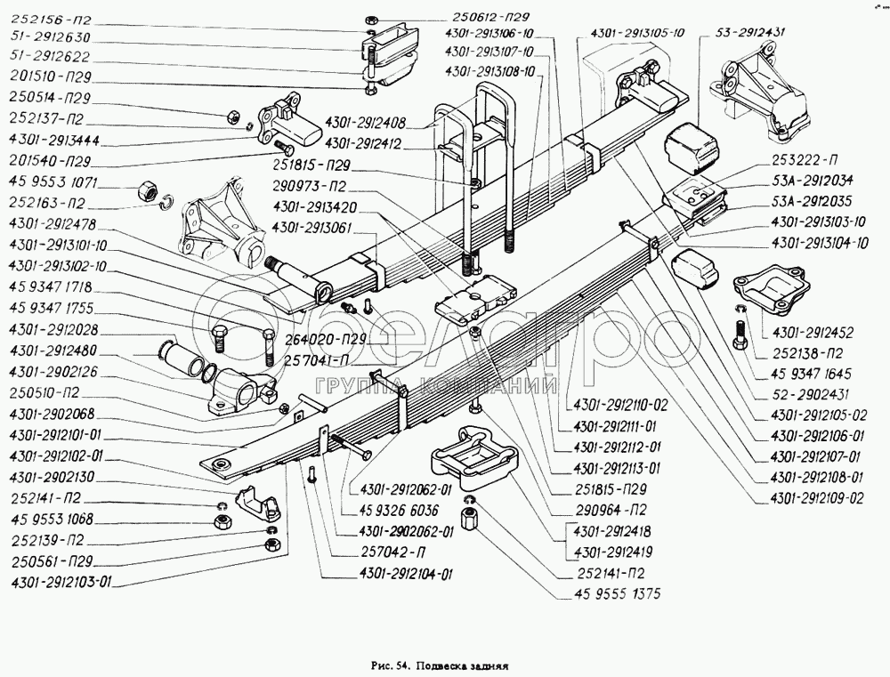 Каталог запасных частей к технике: ГАЗ-4301. Подвеска задняя