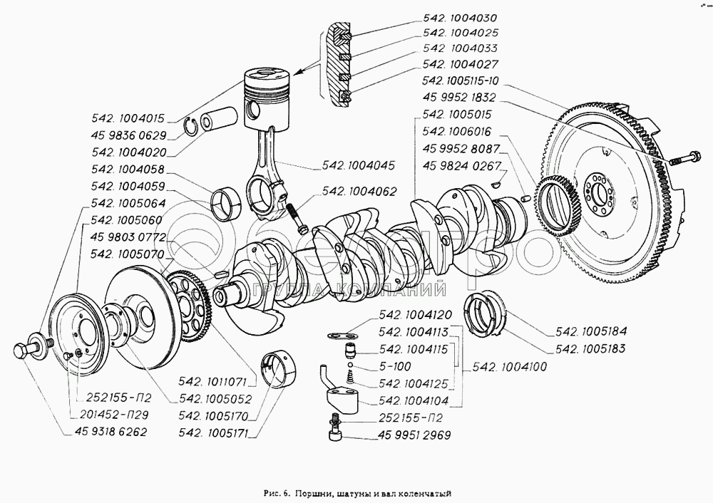 Каталог запасных частей к технике: ГАЗ-4301. Поршни, шатуны и вал коленчатый
