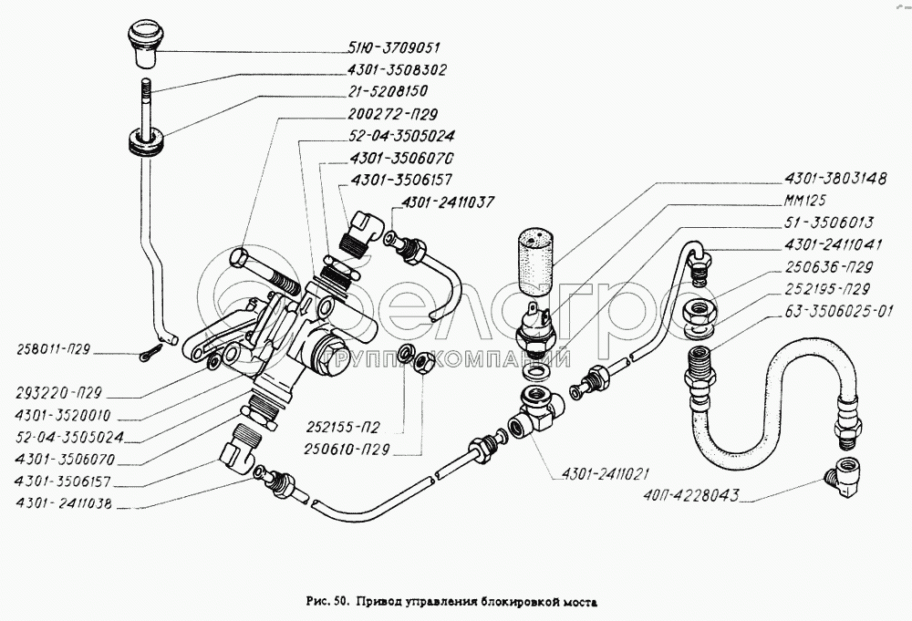 Каталог запасных частей к технике: ГАЗ-4301. Привод управления блокировкой моста