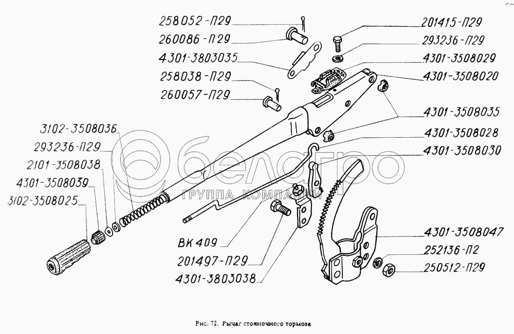 Каталог запасных частей к технике: ГАЗ-4301. Рычаг стояночного тормоза