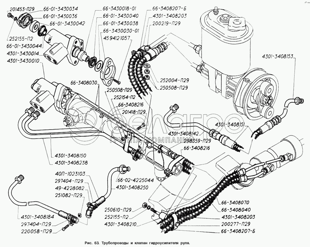 Каталог запасных частей к технике: ГАЗ-4301. Трубопроводы и клапан гидроусилителя руля