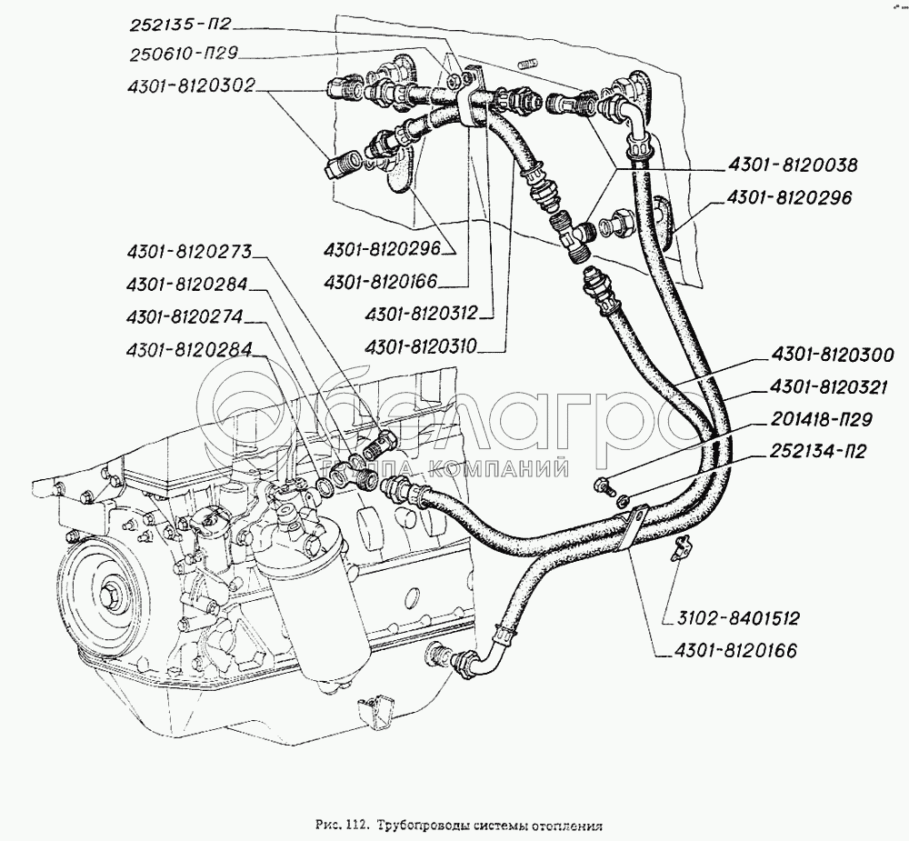 Каталог запасных частей к технике: ГАЗ-4301. Трубопроводы системы отопления