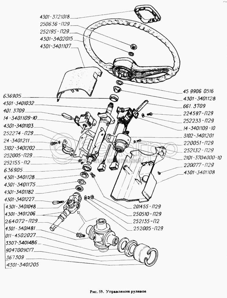 Каталог запасных частей к технике: ГАЗ-4301. Управление рулевое