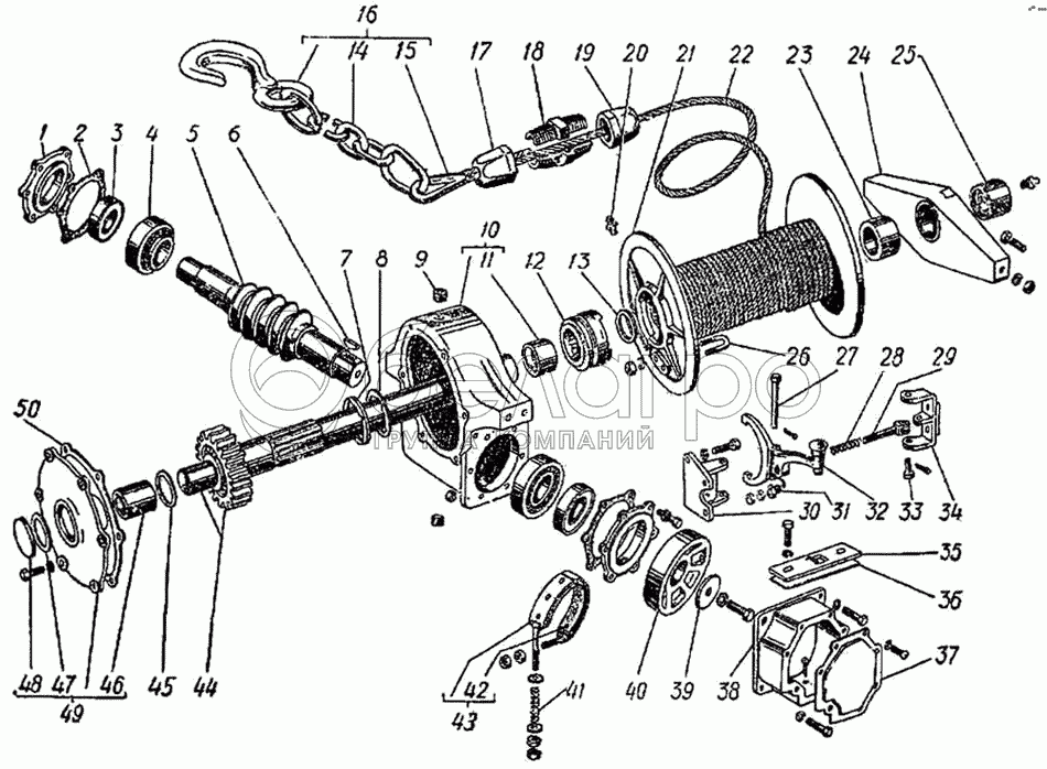 Вилка, включения барабана лебедки с рукояткой в сборе