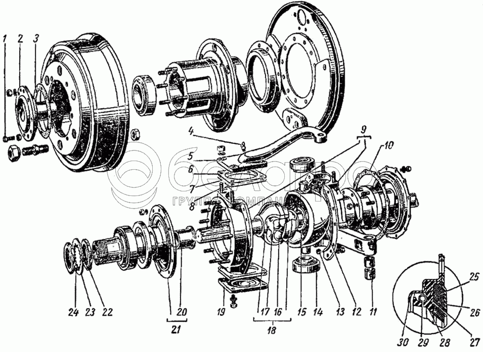 Шарнир поворотного кулака переднего ведущего моста в сборе левый