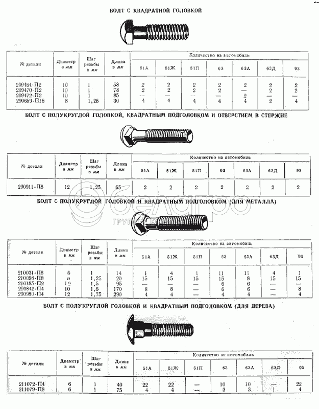 Каталог запасных частей к технике: ГАЗ-51 (63, 93). Болты