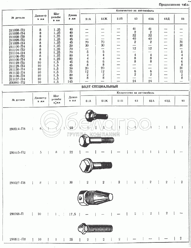 Каталог запасных частей к технике: ГАЗ-51 (63, 93). Болты