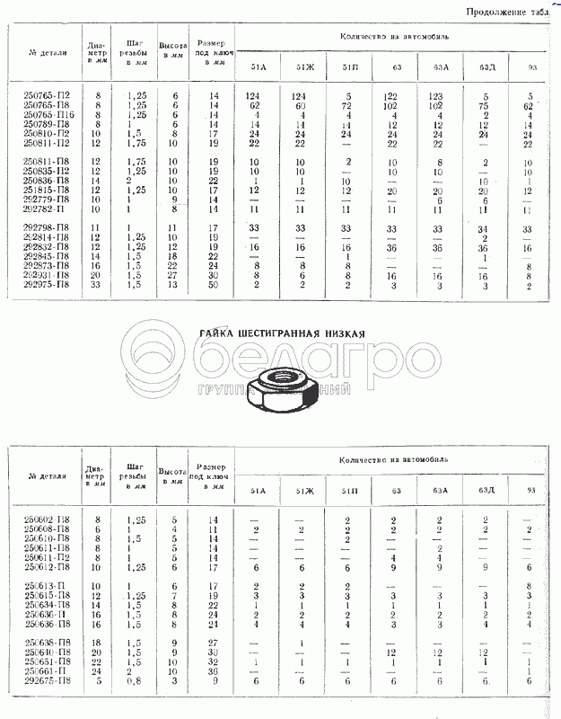 Каталог запасных частей к технике: ГАЗ-51 (63, 93). Гайки