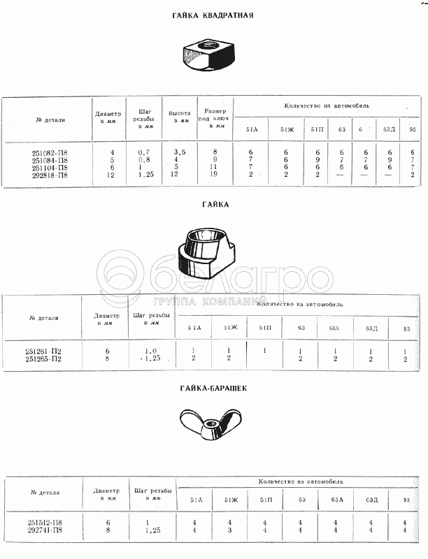 Каталог запасных частей к технике: ГАЗ-51 (63, 93). Гайки