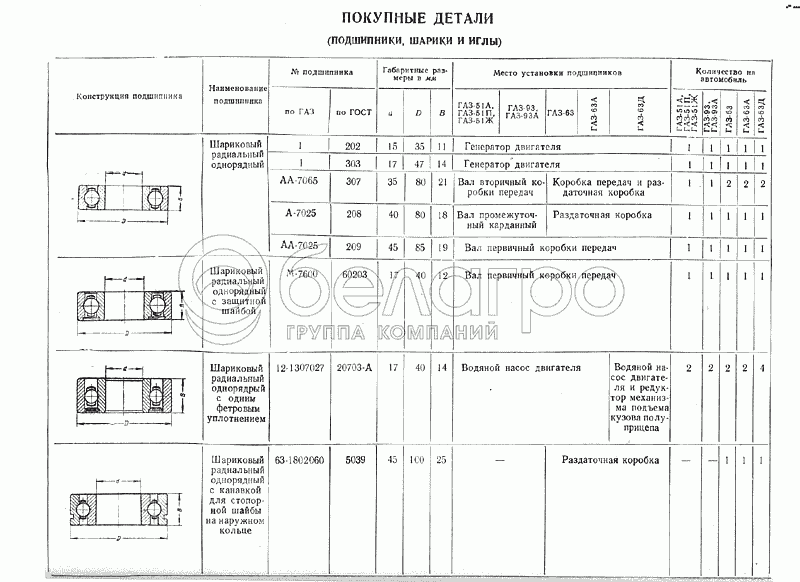 Каталог запасных частей к технике: ГАЗ-51 (63, 93). Подшипники