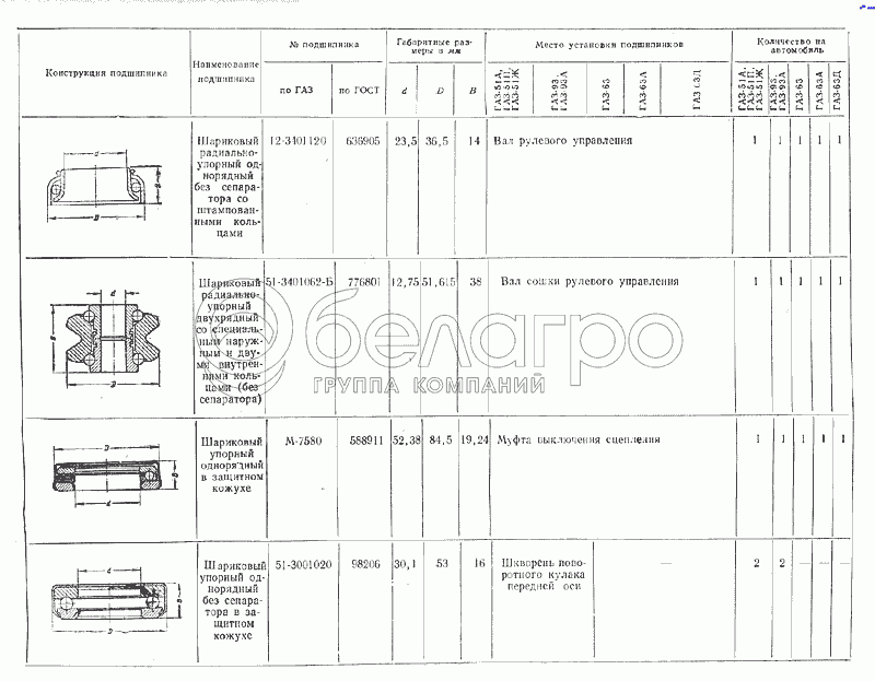 Каталог запасных частей к технике: ГАЗ-51 (63, 93). Подшипники