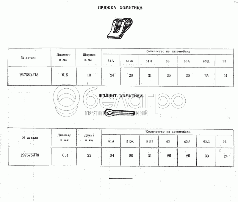Каталог запасных частей к технике: ГАЗ-51 (63, 93). Пряжка и шплинт хомутика
