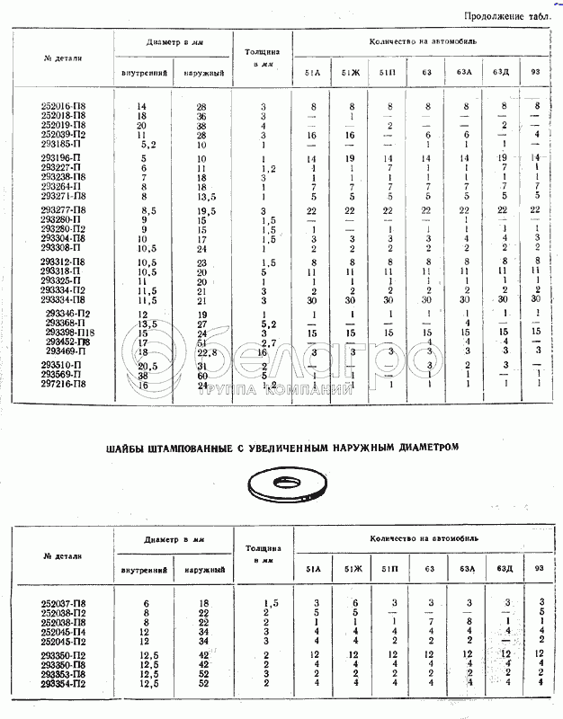 Каталог запасных частей к технике: ГАЗ-51 (63, 93). Шайбы