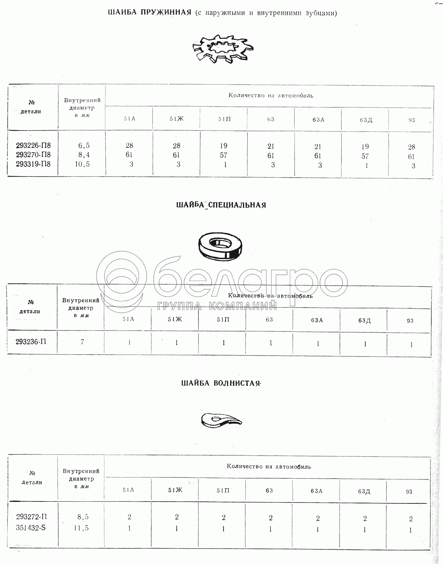 Каталог запасных частей к технике: ГАЗ-51 (63, 93). Шайбы