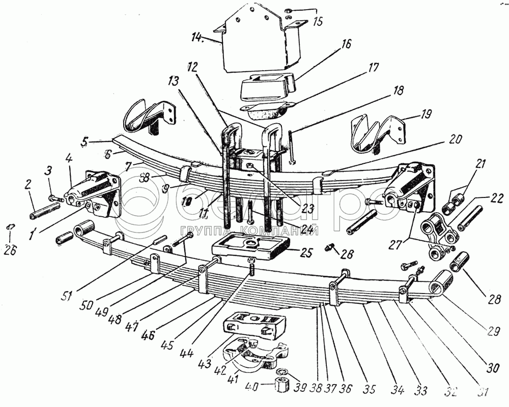 Лист № 4 задней дополнительной рессоры с хомутами в сборе