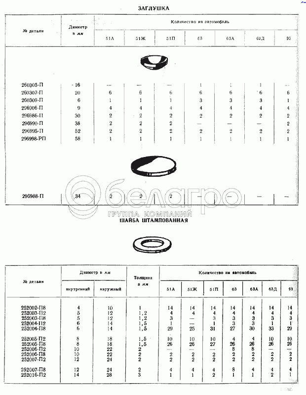 Каталог запасных частей к технике: ГАЗ-51 (63, 93). Заглушки, шайбы