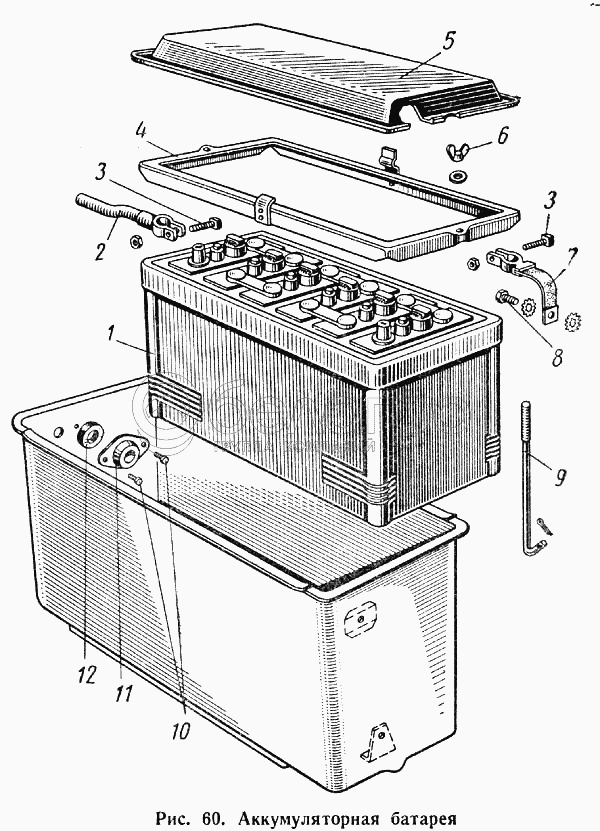 Каталог запасных частей к технике: ГАЗ-52-01. Аккумуляторная батарея