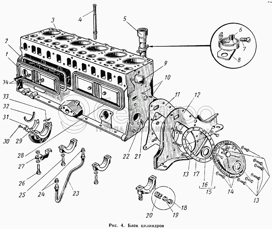 Блок цилиндров с крышками подшипников коленчатого вала в сборе