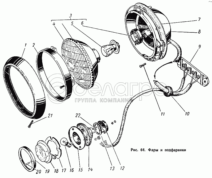 Каталог запасных частей к технике: ГАЗ-52-01. Фары и подфарники