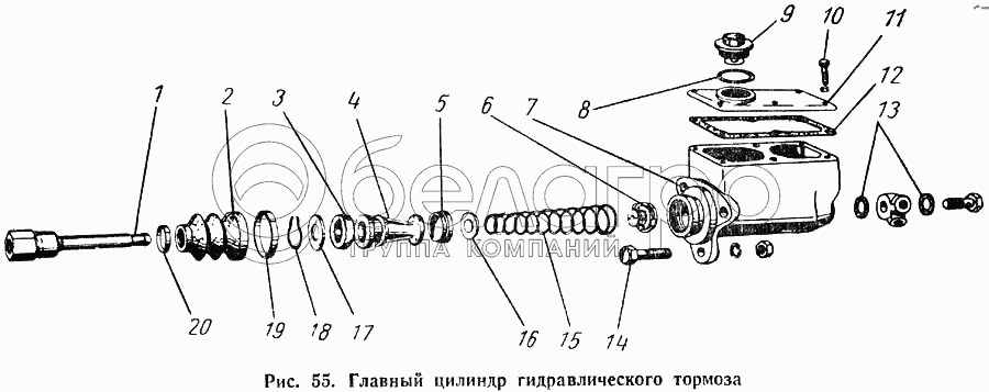 Каталог запасных частей к технике: ГАЗ-52-01. Главный цилиндр гидравлического тормоза