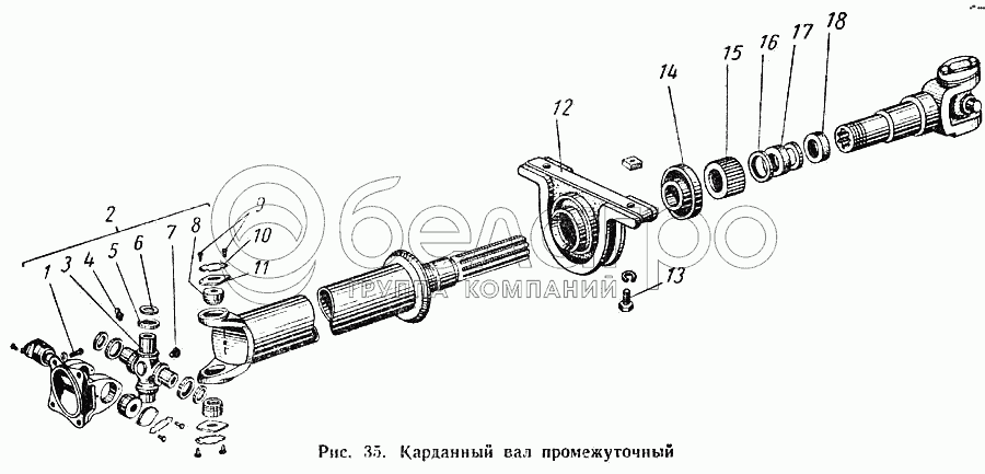 Каталог запасных частей к технике: ГАЗ-52-01. Карданный вал промежуточный