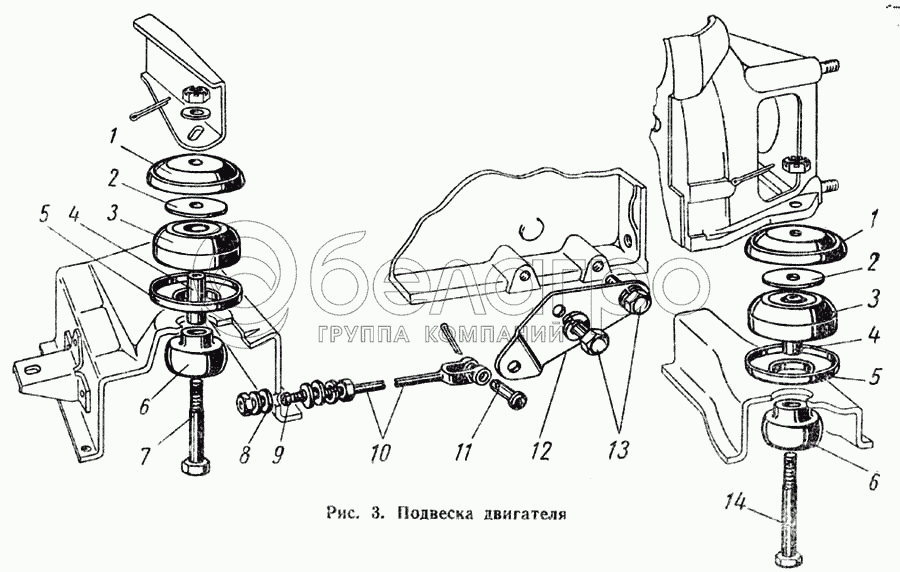 Каталог запасных частей к технике: ГАЗ-52-01. Подвеска двигателя