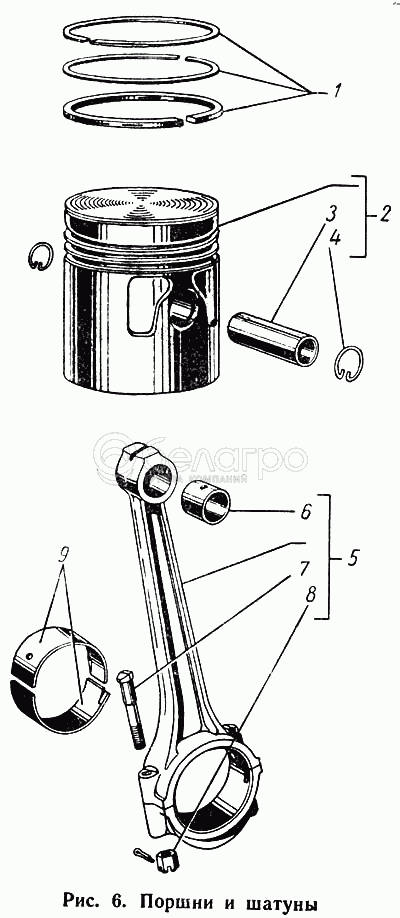 Шатун в сборе (второго, четвертого и шестого цилиндров)