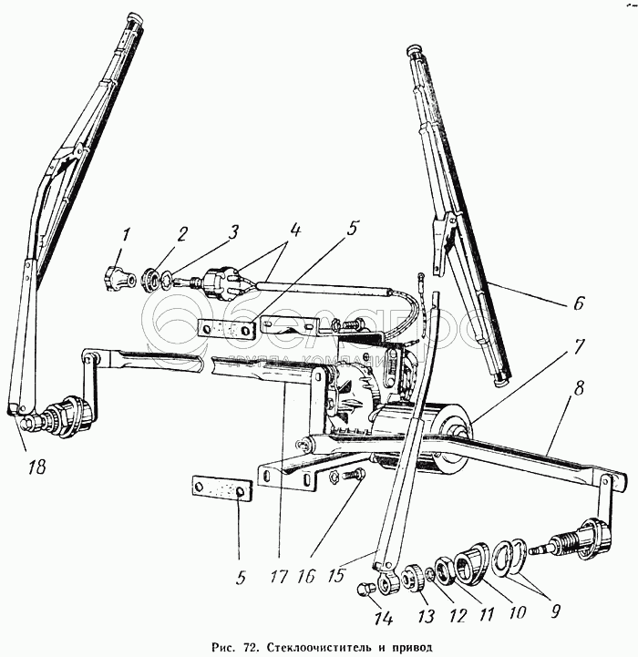 Каталог запасных частей к технике: ГАЗ-52-01. Стеклоочиститель и привод