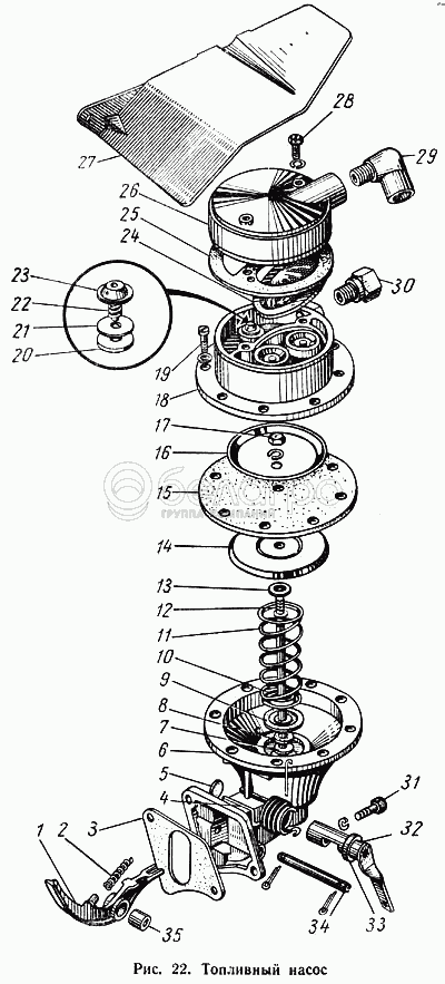 Валик ручного привода бензинового насоса с рычагом в сборе