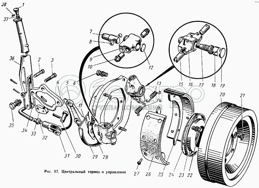 Ограничитель хода корпуса шариков разжимного механизма центрального тормоза